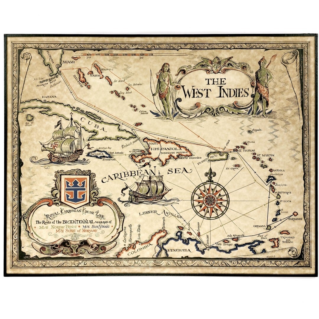 Landkaart 'the West Indies' - Royal Caribbean Cruise Line jaren '70 vintage